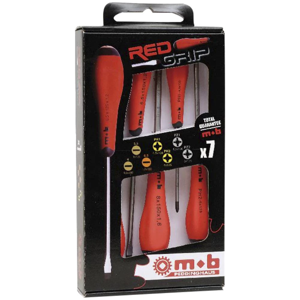 Skruetrækkersæt med 7 dele – til ligekærv, Pozidriv og Phillips skrueforbindelser. Indeholder: ligekærv: 4 mm / 5,5 mm / 6,5 mm, Pozidriv: PZ1 / PZ2, Phillips: PH1 / PH2. Alle med ergonomisk formet tokomponent Nertec-håndtag, som sikrer et komfortabelt greb og maksimalt moment.