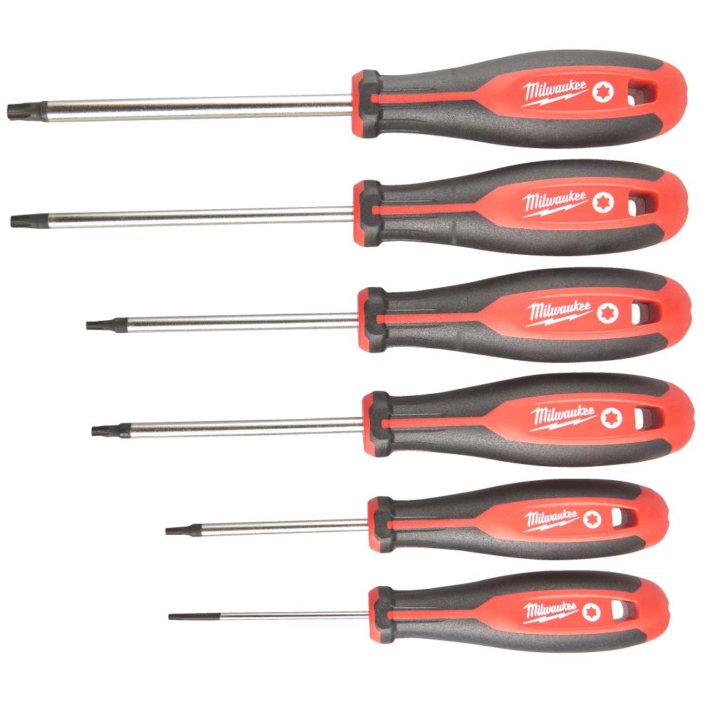 Tri-lobe skruetrækkersæt med seks dele. Skruetrækkere med Tri-Lobe håndtag for maksimal brugerkomfort og moment-tunge opgaver. Desuden har håndtaget hul til sikkerhedsline og permanent ID-markering af størrelse. Hærdet magnetisk spids giver ekstrem holdbarhed og øget brugervenlighed. Indhold: TX10/TX15/TX20/TX25/TX30/TX40.