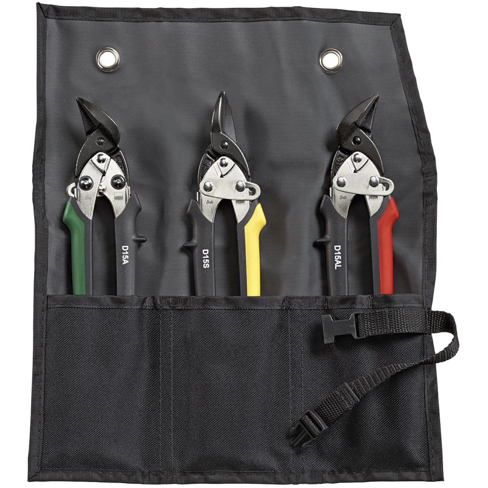 Erdi sæt med tre allroundsakse til lige gennemklip og figurklip. Saksene har et kompakt skærehoved, som gør dem særligt velegnet til små radier og utilgængelige steder. Derudover også dobbelt udveksling og praktisk lås og stop i samme knap, som gør det let og hurtigt at låse saksen med én hånd og holde den låst. Det ergonomisk udformede, kunststofbetrukne tokomponentgreb er praktisk og ligger godt i hånden. Sættet indeholder sakse til hhv. lige-, højre- og venstreklip. Leveres i rullemappe.