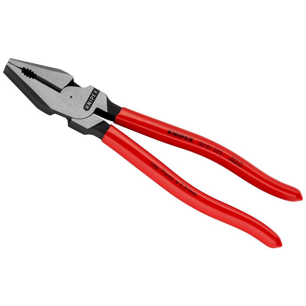 Kraft-kombinationstang sort atramenteret betrukket med kunststof. 35% kraftbesparelse i forhold til almindelige kombitænger. Nemmere arbejde pga. optimeret udveksling. Med skær (hårdhed ca. 63 HRC) til bløde og hårde trådtyper samt pianotråd. Lange skær til tykkere kabler. Med gribezoner til fladt og rundt materiale til mangfoldige opgaver. Special-værktøjsstål af særlig kvalitet, smedet, oliehærdet. Fås i flere dimensioner.
