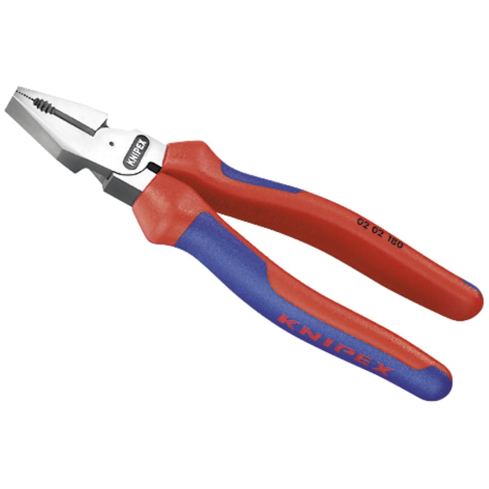 Kraft-kombinationstang sort atramenteret med flerkomponent-håndtag. 35% kraftbesparelse i forhold til almindelige kombitænger. Nemmere arbejde pga. optimeret udveksling. Med skær (hårdhed ca. 63 HRC) til bløde og hårde trådtyper samt pianotråd. Lange skær til tykkere kabler. Med gribezoner til fladt og rundt materiale til mangfoldige opgaver. Special-værktøjsstål af særlig kvalitet, smedet, oliehærdet. Fås i flere dimensioner.