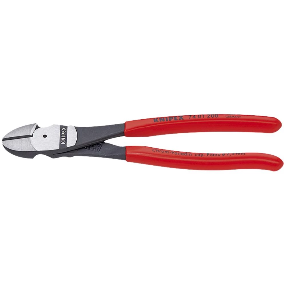 Kraft-skævbider sort atramenteret betrukket med kunststof. Til hårdeste, vedvarende belastning. Høj skæreydelse ved lavt kraftforbrug pga. optimal tilpasning af skærevinkel og udvekslingsforhold. Præcisionsskærene er desuden induktivt hærdet (skærhårdhed ca. 64 HRC), til alle trådtyper inklusive pianotråd. Krom-Vanadium-højeffektstål, smedet og oliehærdet. Fås i flere dimensioner.