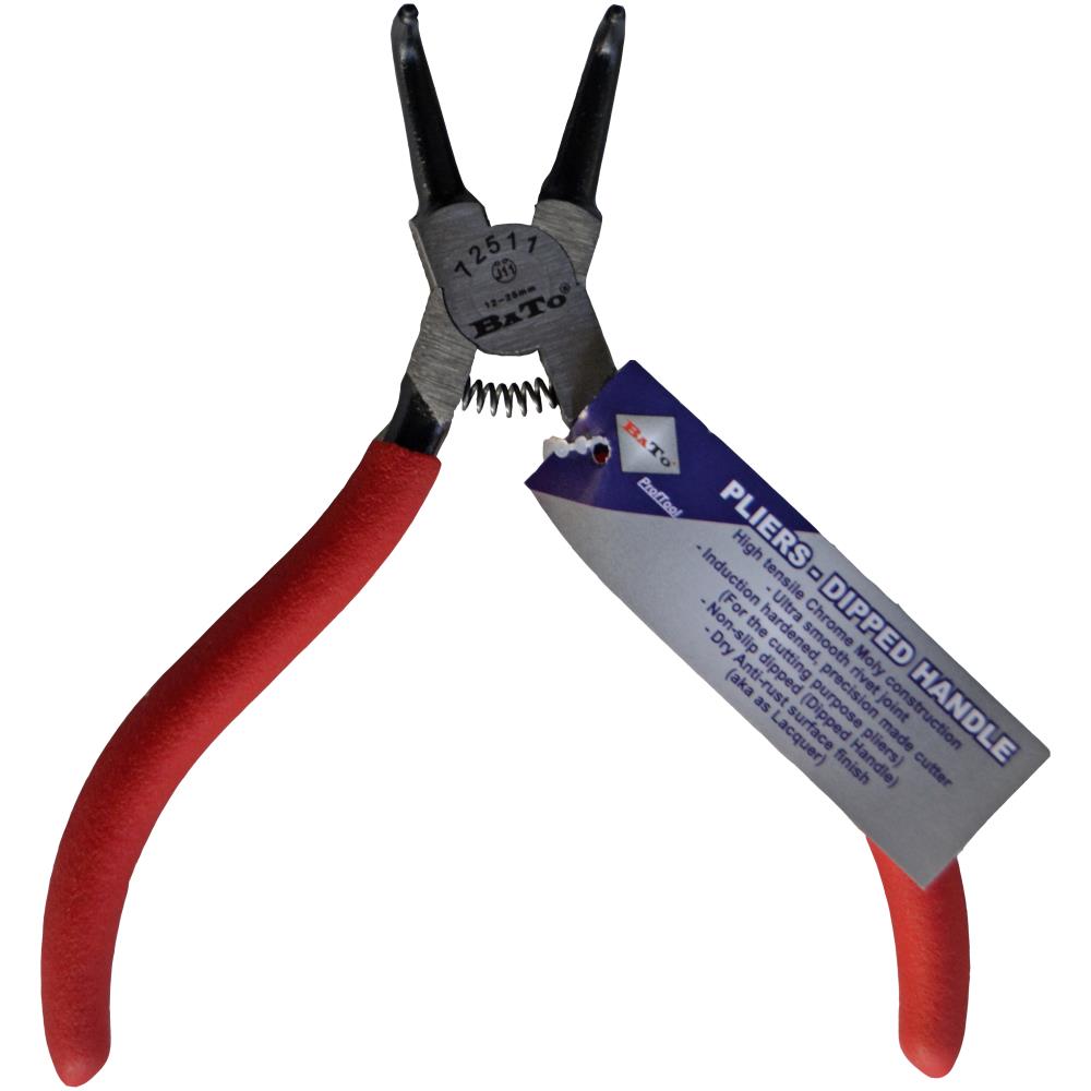 Låseringstang med 90° buet spids til indvendige låseringe og dyppet greb for god komfort. Fås i forskellige varianter.