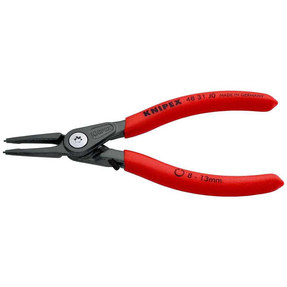 Præcisions-låseringstang med lige spidser til indvendige ringe i boringer. Tangen har indsatte spidser for sikkert arbejde og skruet led så tangen går præcist og uden spillerum. Skridsikkert kunststof på grebene. Indsatte spidser: fjederståltråd, trukket. Tangkrop i krom-vanadiumstål, smedet og oliehærdet. Fås i flere varianter.
