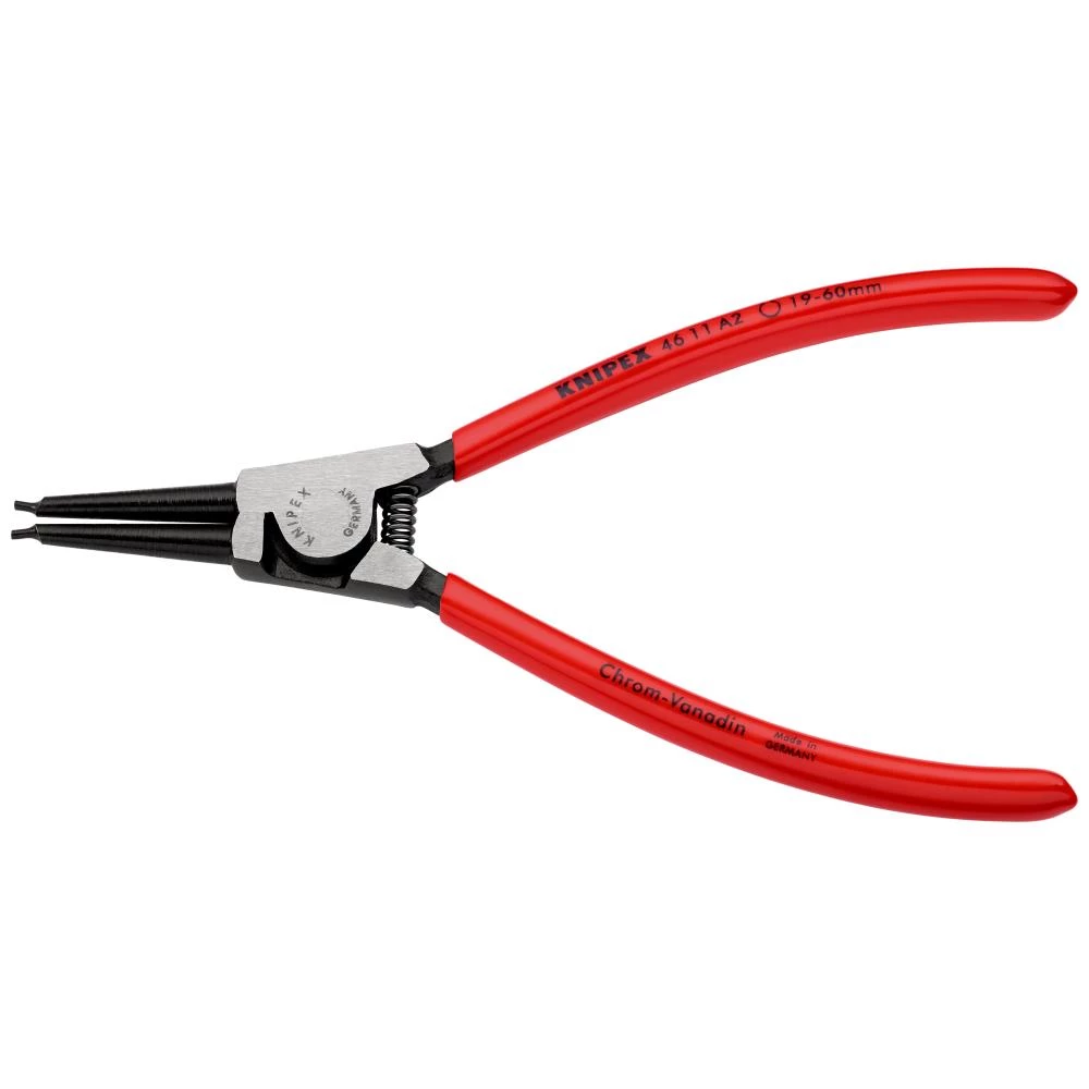 Låseringstang sort atramenteret. Til montage af låseringe på aksler i området fra ø 3-300 mm. Robust form, smedet. Skridhæmmende, stabile spidser. Tangkrop og spidser i krom-vanadin-stål, smedet, oliehærdet. Fås i flere dimensioner.