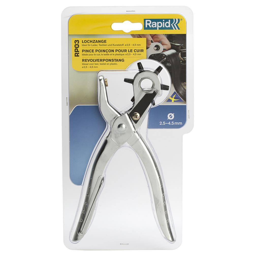 Alsidig hultang til læder, tekstil og plastik. Nem at håndtere, designet til hyppig brug. Det roterende hoved giver mulighed for hurtigt at vælge den korrekte hul-diameter fra 2,5 til 4.5 mm. Flot finish i krom.