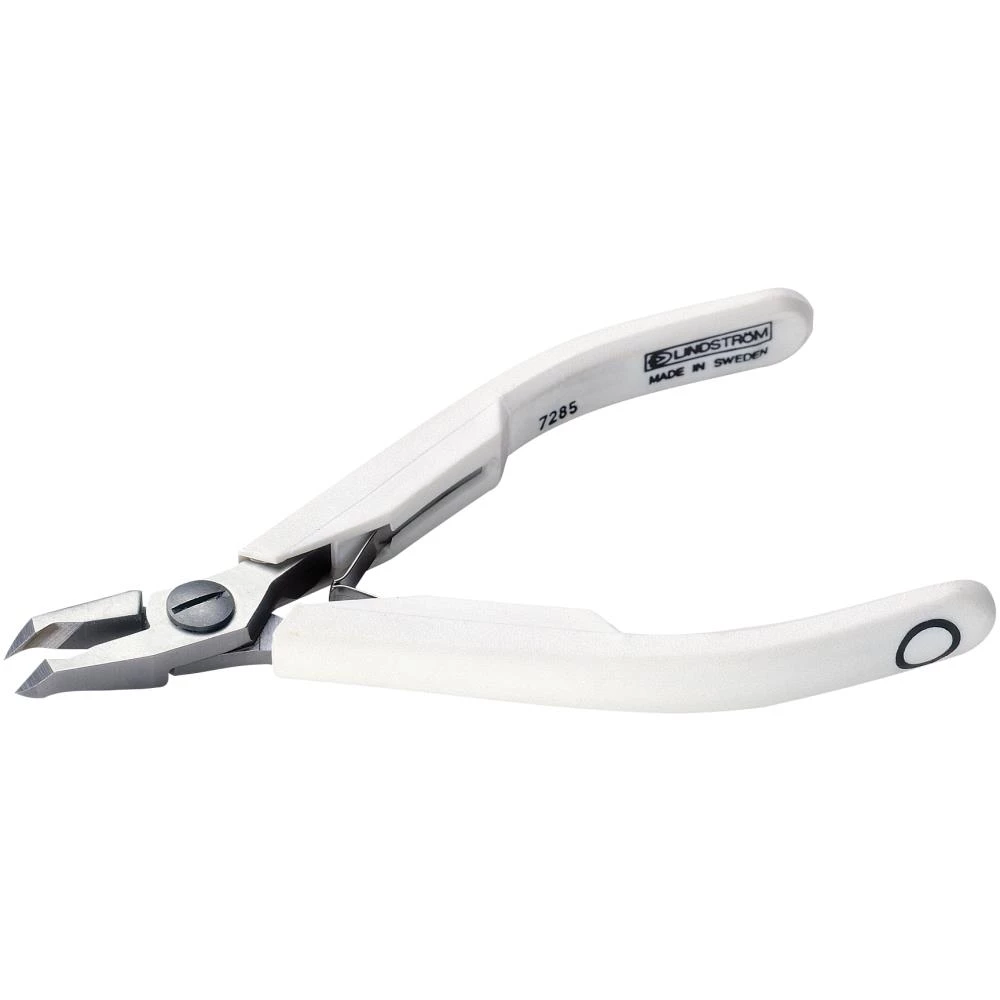 Materiale: Højtlegeret stål. Poleret. Numerisk styret slibeproces sikrer nøjagtige og ensartede kæber med stor styrke og lang levetid. Præcisions hærdede skæreægge til hårdhed 58-60HRC. Justerbar centerbolt. ESD sikker håndtag i syntetisk materiale, forsynet med returfjeder. Særligt velegnet for demonterings- og reparationsopgaver, samt ved monteringsopgaver, hvor pladsen er trang.