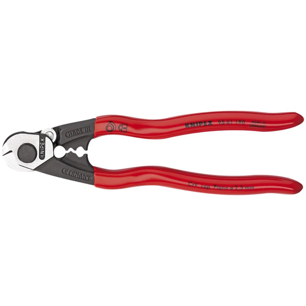 Smedet stålwiresaks med to presseprofiler for kabeltyller på bowdenhylstre og endekapper til trådwirekabler. Komfortabelt at arbejde med pga. den behagelige, slanke form og indvendigt liggende åbningsfjeder. Skruet led for præcis knivføring, justerbar. Høj udveksling for kraftsparende arbejde. Skærhårdhed ca. 64 HRC.