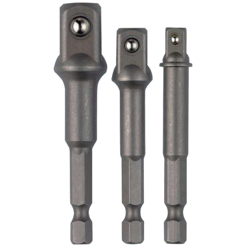 Topadaptersæt med 1/4″ 6kt skaft til 4kt toppe hhv. 1/4″, 3/8″ og 1/2″. Kromvanadiumstål.