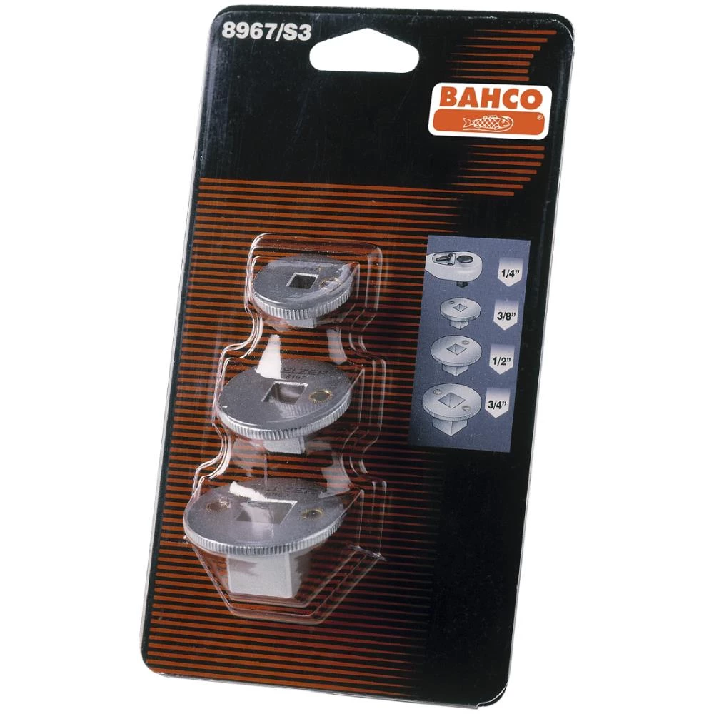 Skiveovergangssæt med skiveovergange fra indvendig firkant til udvendig firkant i tre forskellige dimensioner (7767, 8167 og 8967). Overgange med tynd, magnetisk skive til fiksering på toppen. Fremstillet af højtlegeret, galvaniseret stål. Standarder: ISO 1174, DIN 3120 og UNE 16503.