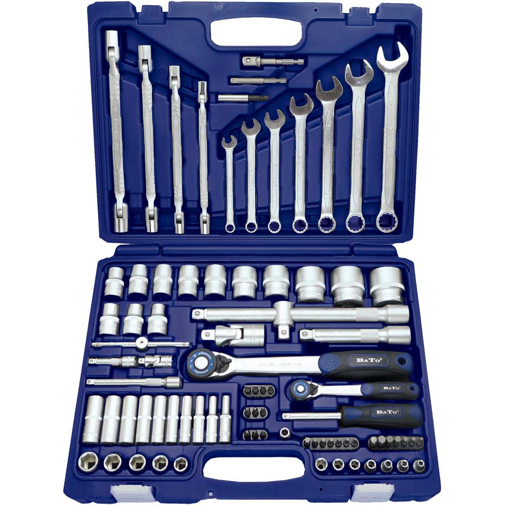 Værktøjssæt med 85 værktøjsdele i kuffert. Indeholder: korte 1/4″ (4,0 – 5,0 – 5,5 – 6,0 – 7,0 – 8,0 – 9,0 – 10,0 – 11,0 – 12,0 – 13,0 – 14,0 mm), lange 1/4″ toppe (4,0 – 5,0 – 6,0 – 7,0 – 8,0 – 9,0 – 10,0 – 11,0 – 12,0 – 13,0 mm), korte 1/2″ toppe (11,0 – 11,0 – 12,0 – 13,0 – 14,0 – 15,0 – 17,0 – 19,0 – 22,0 – 24,0 – 27,0 – 30,0 – 32,0 mm), 1/4″ bits (lige kærv 3-4-5-6 mm, Phillips PH1-2-3, Pozidriv PZ1-2-3, Torx TX10-15-20-25-27-30-40, 6kt 2,5 – 3,0 – 4,0 – 5,0 – 6,0 – 7,0 – 8,0 mm), 1/4″×1/4″ adapter, 1/4″ wobble forlængere hhv. 50 og 100 mm, 1/4″ kardanled, 1/4″ T-glider, 1/2″ forlængere hhv.125 og 250 mm, 1/2″ T-glider, 1/2″ kardanled, 1/4″ 73-tands skraldenøgle, 1/2″ 72-tands skraldenøgle, ringgaffelnøgler 8-10-11-13-15-17-19 mm, dobbelte lednøgler 6×8 – 10×11 – 12×13 – 14×15 mm, 1/4″ og 1/2″ topholder, 1/4″ bitsholder.
