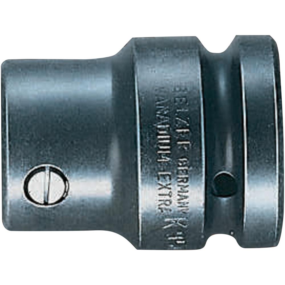 1″ bitholder med indvendig firkant til skruetrækkerbits med 22 mm udvendig sekskant. Med låseskrue der holder bits. Højtlegeret stål, fosfateret.