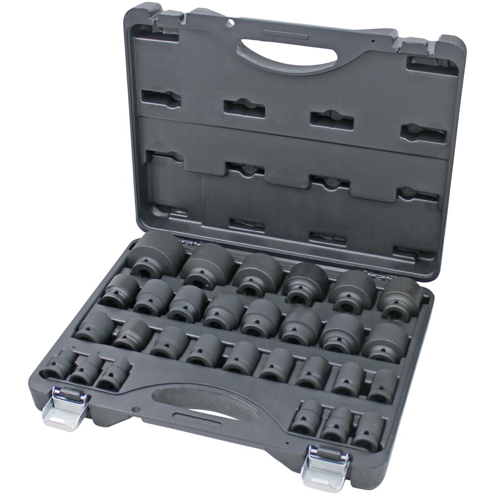 1/2″ krafttopsæt med 29 dele. Indeholder korte toppe i dimensionerne: 10-11-12-13-14-15-16-17-18-19-20-21-22-23-24-25-26-27-28-29-30-32-33-34-35-36-38-41-46 mm. Leveres i praktisk kuffert.