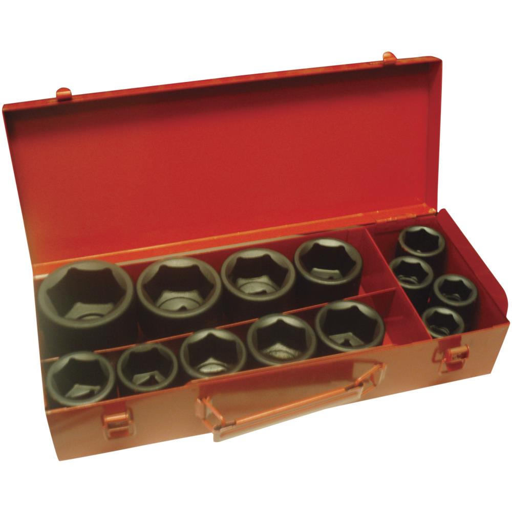 Krafttopsæt med 13 dele. Korte 3/4″ kraftoppe. Sættet indeholder: 21-22-24-27-30-32-33-34-36-38-41-46-50 mm. Leveres i plastboks.