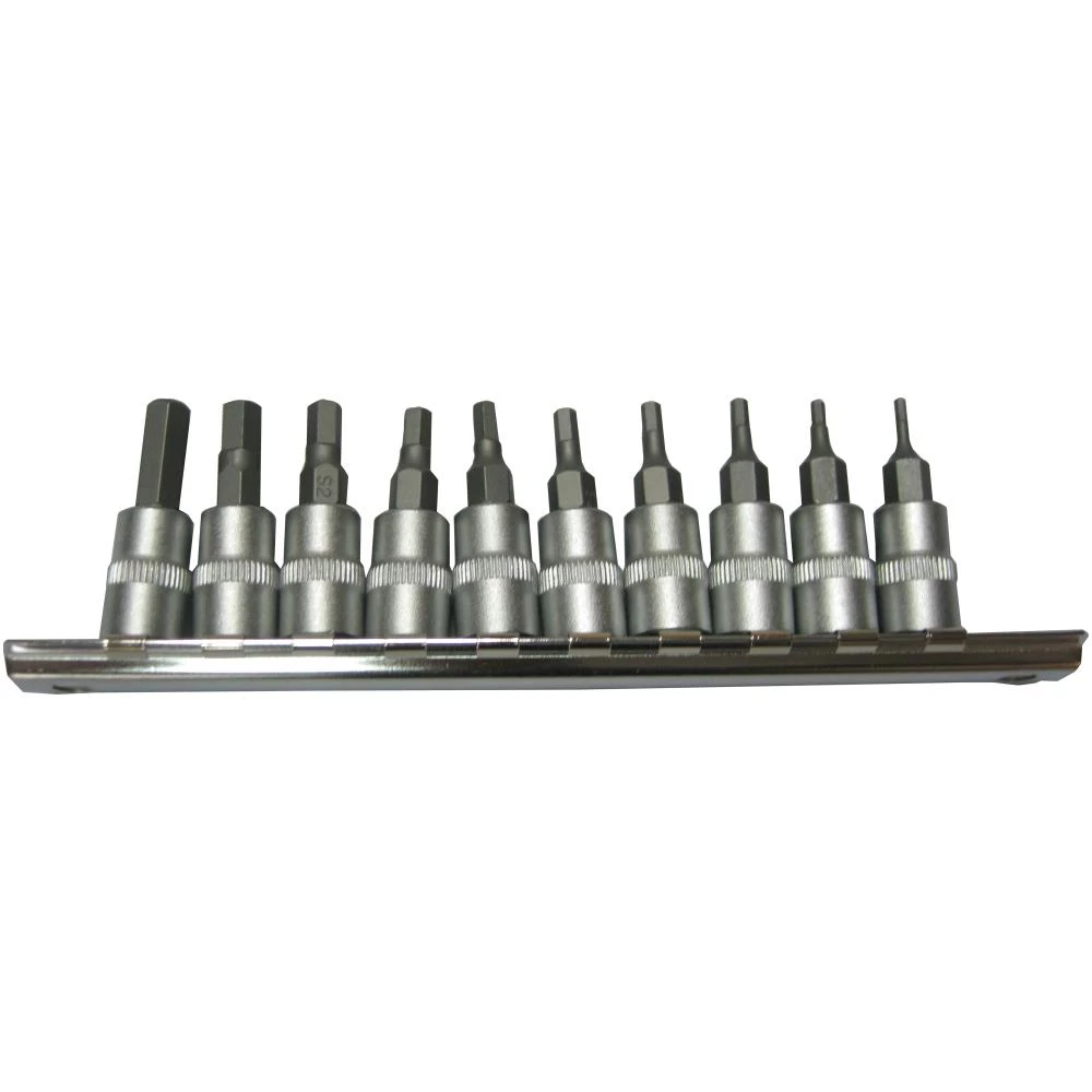 Stifttopsæt med 10 dele. 1/4″ 6kt stifttoppe 1/16″ – 5/64″ – 3/32″ – 7/64″ – 1/8″ – 9/64″ – 5/32″ – 3/16″ – 7/32″ – 1/4″. Leveret på metalskinne.