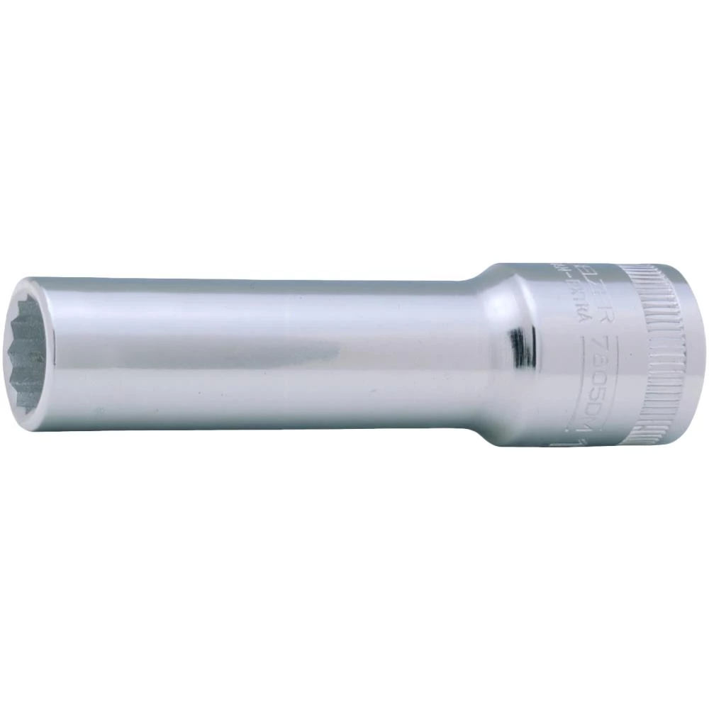 1/2″ lang top med indvendig tolvkant-profil. Mindre slid på fastgørelseselementet takket være Dynamic-Drive-profil. Maksimal trykfordeling og vridmoment takket være det ekstra flankeområde. Rillet til fingerfastgørelse. Ikke velegnet til maskinel brug. Højglanspoleret højtlegeret stål. Standarder: 2725-1/1174-1 og DIN 3120.