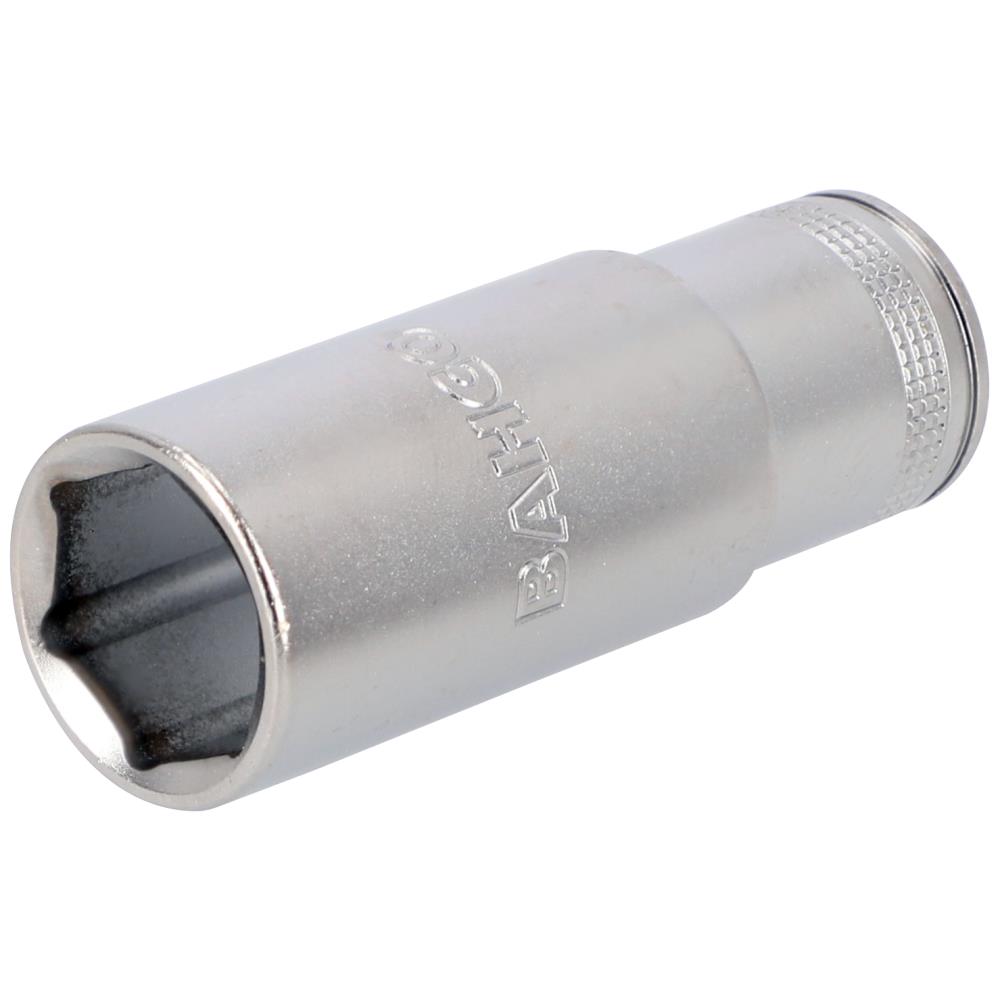 3/8″ lang top med indvendig tolvkant-profil og slanke sider for lettere tilgængelighed. Egner sig til brug på møtrikker og bolte som anvendes i flyindustrien. Mindre slid på fastgørelseselementet takket være Dynamic-Drive-profil. Maksimal trykfordeling og vridmoment takket være det ekstra flankeområde. Rillet til fingerfastgørelse. Ikke velegnet til maskinel brug. Højglanspoleret højtlegeret stål. Standarder: ISO 2725-1/1174-1 og DIN 3120