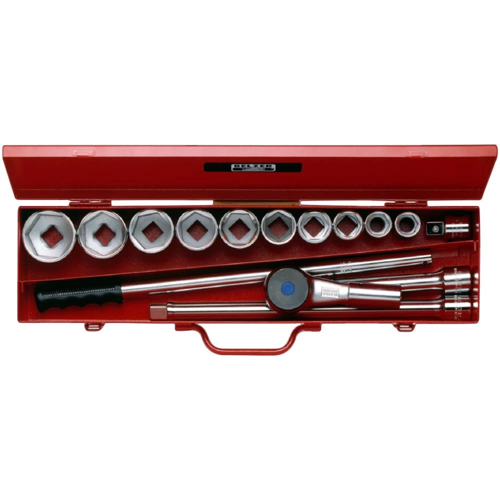 3/4″ topnøglesæt. 6kt-toppe, metrisk. Højtlegeret stål. Højglanspoleret. Stålkasse med stålindlæg. ISO 1174. DIN 3120.