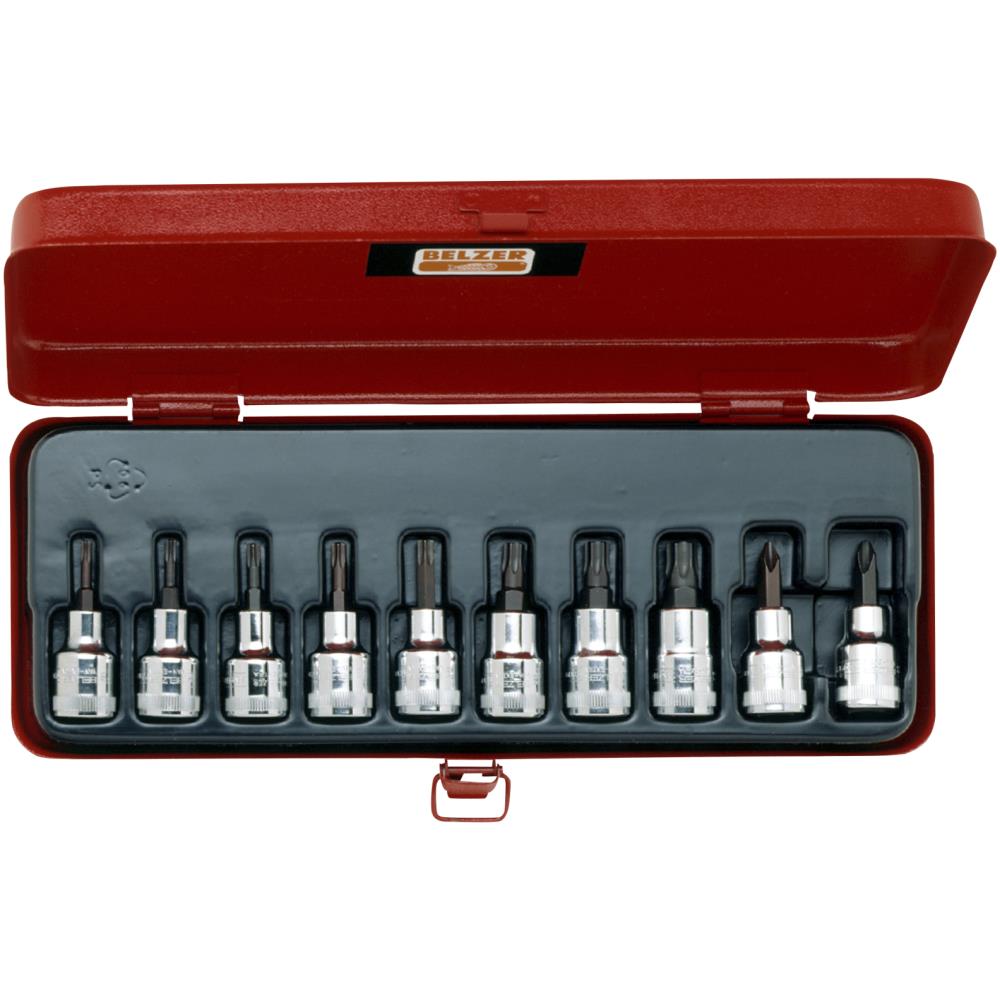 1/2″ skruetrækkertoppe. TORX- og Phillips-toppe. Højtlegeret stål. Højglanspoleret. Ovnlakeret stålkasse. Med kunststofindlæg, som fastholder værktøjerne. ISO 1174. DIN 3120.