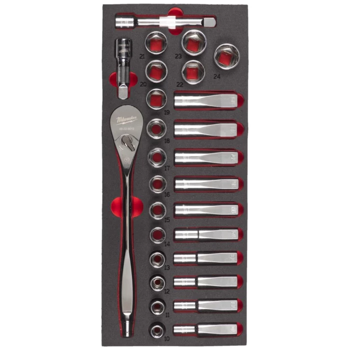 Indsats t/værkstedvogn, 1/2″ skralde-/topsæt