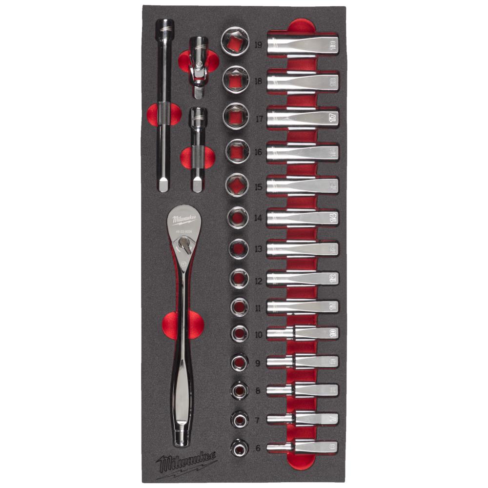 Indsats t/værkstedvogn, 3/8″ skralde-/topsæt