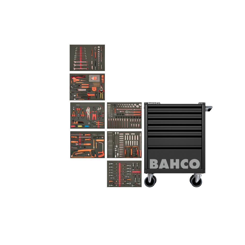 Robust værkstedsvogn med 7 skuffer. Vogn i solid stålkonstruktion med hele 140 svejsepunkter for maksimal stabilitet, lakeret både udvendig og indvendig med maling af meget høj kvalitet der overholder de samme standarder, som der bruges i bilindustrien. Dobbelt ramme sikrer at skuffer og glideskinner fungerer, selv hvis rammen beskadiges. Forsynet med glideskinner med kuglelejer, skuffer kan trækkes 100 % ud. Gummihjul sikrer at vognen er nem at manøvrere. Ydermere har vognen et stærkt og sikkert låsesystem. Inkl. 428 dele værktøj.