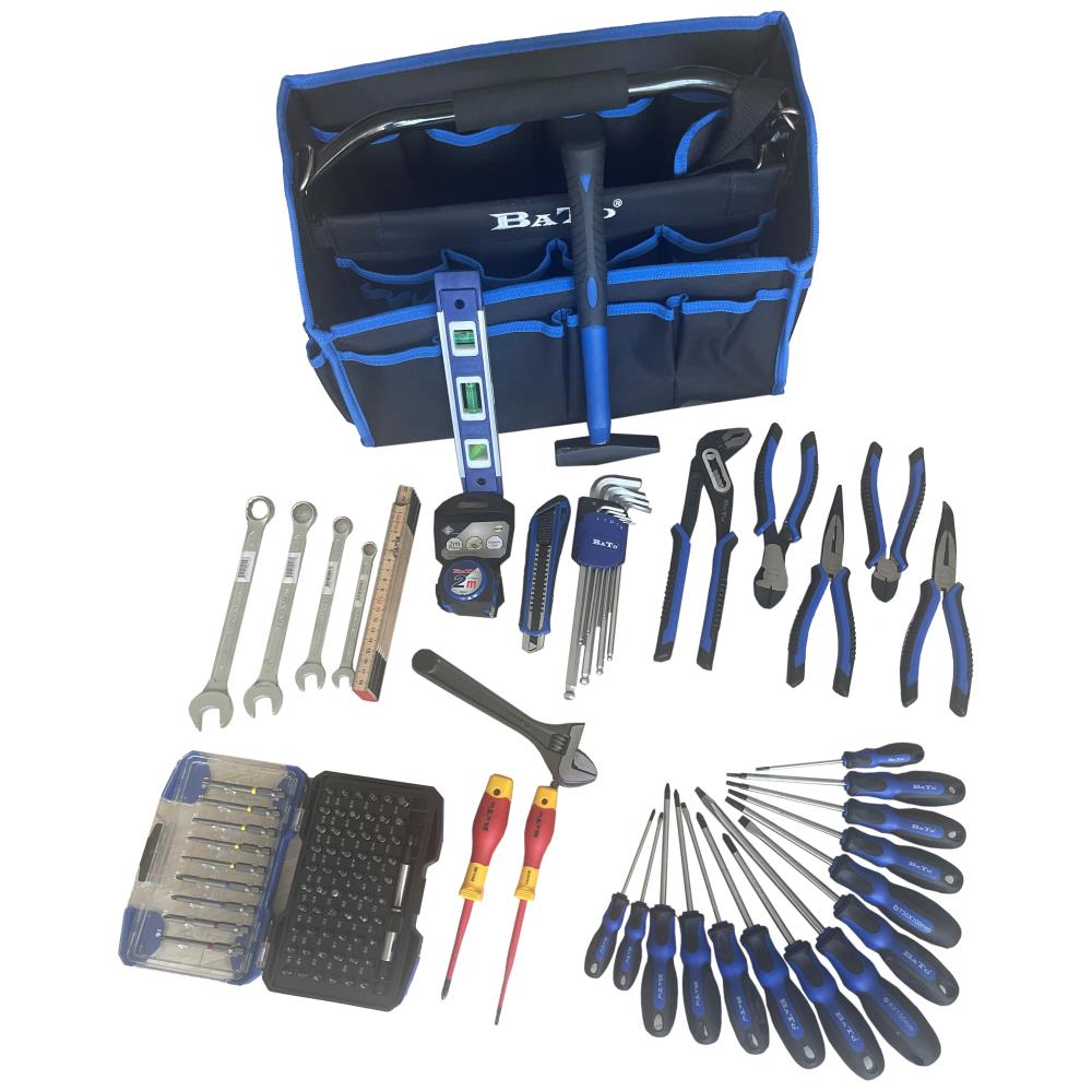 Gør-det-selv Prof Start Luksus værktøjssæt med 122 værktøjsdele til gør-det-selv håndværkeren. Sættet indeholder: Lille værktøjstaske i tekstil med 300 g bænkhammer, 9 dele stiftnøglesæt 1,5-10,0 mm, 14 dele Basic skruetrækkersæt kærv/PH/PZ/Torx, 2 VDE-skruetrækkere hhv. kærv 3,0 mm og PH1, 5 dele Basic tangsæt med softgrip hhv. sideafbider, kraftig sideafbider, lige spidstang, buet spidstang og vandpumpetang, skiftenøgle 8″, 4 ringgaffelnøgler hhv. 10/13/17/19 mm, 71 dele 1/4″ bitssæt med lange og korte bits, Workpro torpedo-aluvaterpas med magnet 225 mm, 2 mtr. tommestok i træ, 2 mtr. båndmål med bælteclips, samt 18 mm hobbykniv med super auto-lock og sorte ultraskarpe blade.