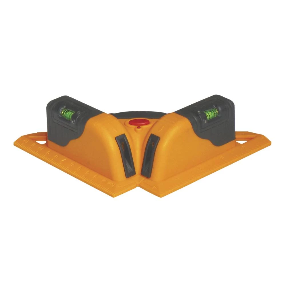 Handy vinkellaser, som danner 2 fine og klare laserlinjer i 90° vinkel. Indbyggede runde- og rørformede libeller til vandret og lodret justering. Ideel til væg, gulv og fliser. Nøjagtighed ± 3,0 mm/10 mtr. Maks. rækkevidde 30 mtr. Levers inkl. magnetisk mål, batteri og taske.