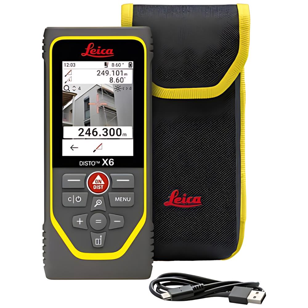 Disto X6 afstandsmåler til udendørs måling. Billedangivelse af hvor laserprikken rammer. Klar og tydelig 2,8″ touch-farveskærm. Berøringsfri afstandsmåling. Bluetooth til dataoverførsel til app. Ræddevidde 0,05-250 mtr. Nøjagtighed ±0,1 mm/1,0 mtr. Li-ion genopladeligt batteri.