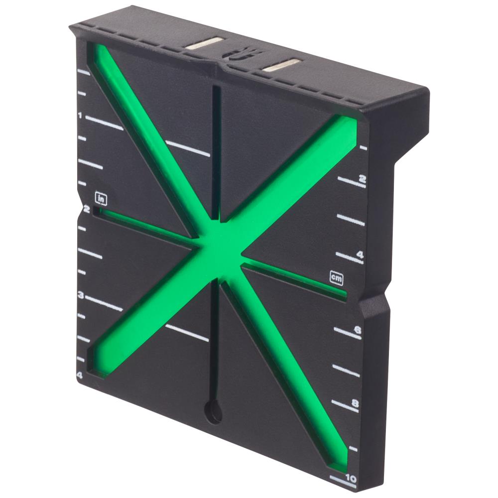 Milwaukee målplade HI-VIST. En lasermålskive med bred magnetisk bund, som gør den stabil på gulve og jernholdige overplader. Reflekterende overflade med høj kontrast til brug med grøn laser. X-designet giver responsiv feedback og guider brugeren mod midten, hvilket letter opsætningen.
