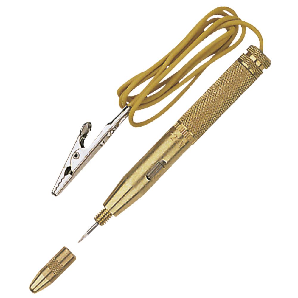 Ledningsprøver 6-24 volt, med messinghætte, stålspids, fast ledning og kabelsko.