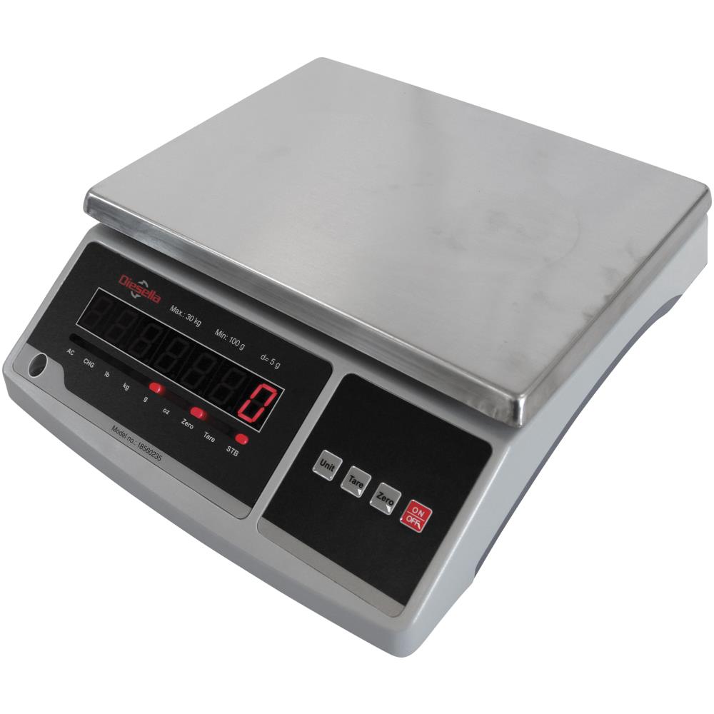 Hurtig og præcis standardbordvægt til generelle vejeformål. Funktioner: enhed, tare og nulstilling. Udført i et robust ABS-plasthus med rustfri stålplatform (286×215 mm) og stort LED-display med rød farve. Leveres med strømadapter samt genopladeligt batteri. Fås i flere varianter.