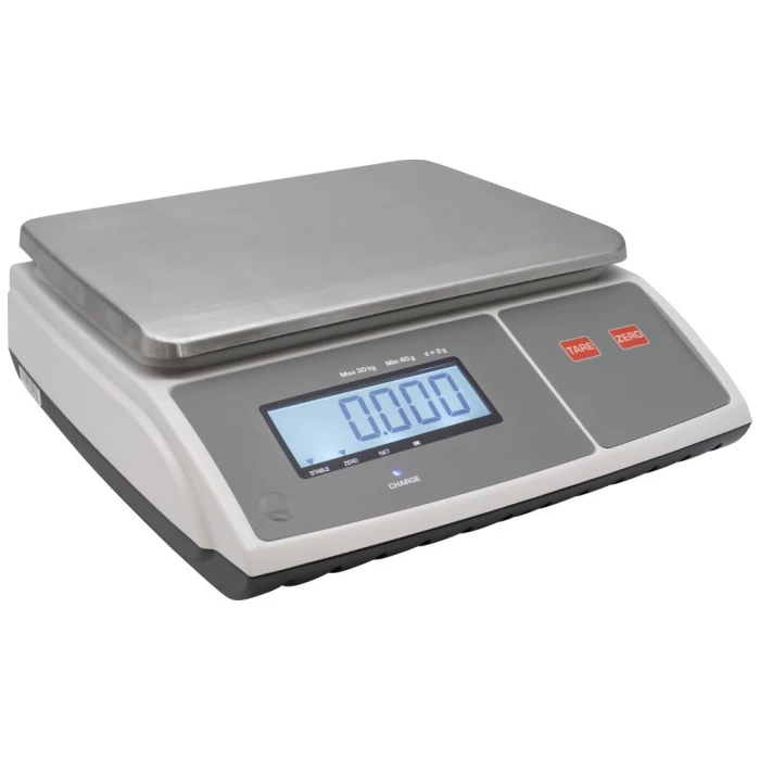 Simpel bordvægt med e-inddeling til brug i handelsmæssige sammenhænge. Det kompakte design med en vejeplade på 204×263 mm gør den nem at integrere i og ved arbejdsstationer uden at optage unødig plads. Displayet har 25 mm store cifre med hvid LED-sidebelysning, som sikrer god læsbarhed under forskellige lysforhold. Betjeningen er intuitiv med to bløde membrantaster, og det indbyggede 6 V/3,2 Ah blysyrebatteri giver op til 60 timers kontinuerlig drift, perfekt til mobile anvendelser. Vægten leveres i kapaciteter fra 3 kg op til 30 kg. Leveres uden førstegangsverifikation! Ved brug til afregning eller anden lovpligtig vejning kræves en separat verifikation udført af et godkendt organ.