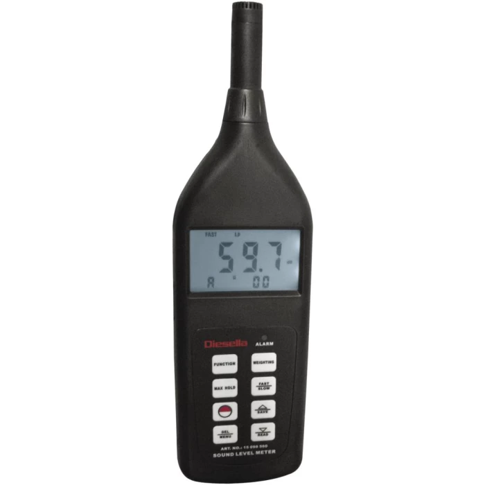 Digitalt decibelmeter med 2 forskellige filterkurver og funktioner, som fx: Hurtig (fast) lydoptagelse, som anvendes når man ønsker at se de hurtige lydtoppe. Langsom tilstand (slow) giver et stabilt måleresultat af lyden, der enten varierer eller pulserer. Lyden kan måles momentant eller give en gennemsnitlig værdi over en udvalgt periode fra 10 sek. til 24 timer. Intern hukommelse til 30 målinger. Derudover har apparatet registrering af maks. værdi, alarmfunktion (LED-lys lyser når støjniveauet er over en forudindstillet værdi – andelen af målinger der overstiger alarmværdien i måleperioden kan vises), valgbar automatisk eller manuel slukning. Filter A: Modsvarer det menneskelige øres frekvens følsomhed og er derfor velegnet til miljøvenlige støjmålinger. Filter C: Et lineært filter som er velegnet til støjkontrol af maskiner og deslige.