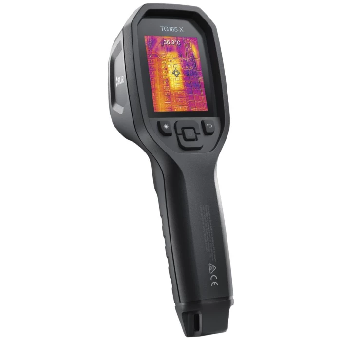 FLIR TG165-X termometer/termokamera viser måling af spot-temperatur og et termisk billede af objektet der måles på, så man nemt kan se højeste/laveste temperatur ved hjælp af farveskalaen. Termometeret har ikke alle de funktioner man kender fra et termokamera, men håndværkeren/teknikeren der arbejder med fejlfinding og temperaturrelaterede problemer, vil kunne løse mange opgaver hurtigt og sikkert. Viser måleområde for spotmåling med en rund laser-cirkel, som ændrer sig i størrelse i forhold til afstanden til objektet. Leveres med indbygget opladeligt batteri, 4 GB indbygget hukommelse, USB-kabel, håndledsrem, taske og manual.