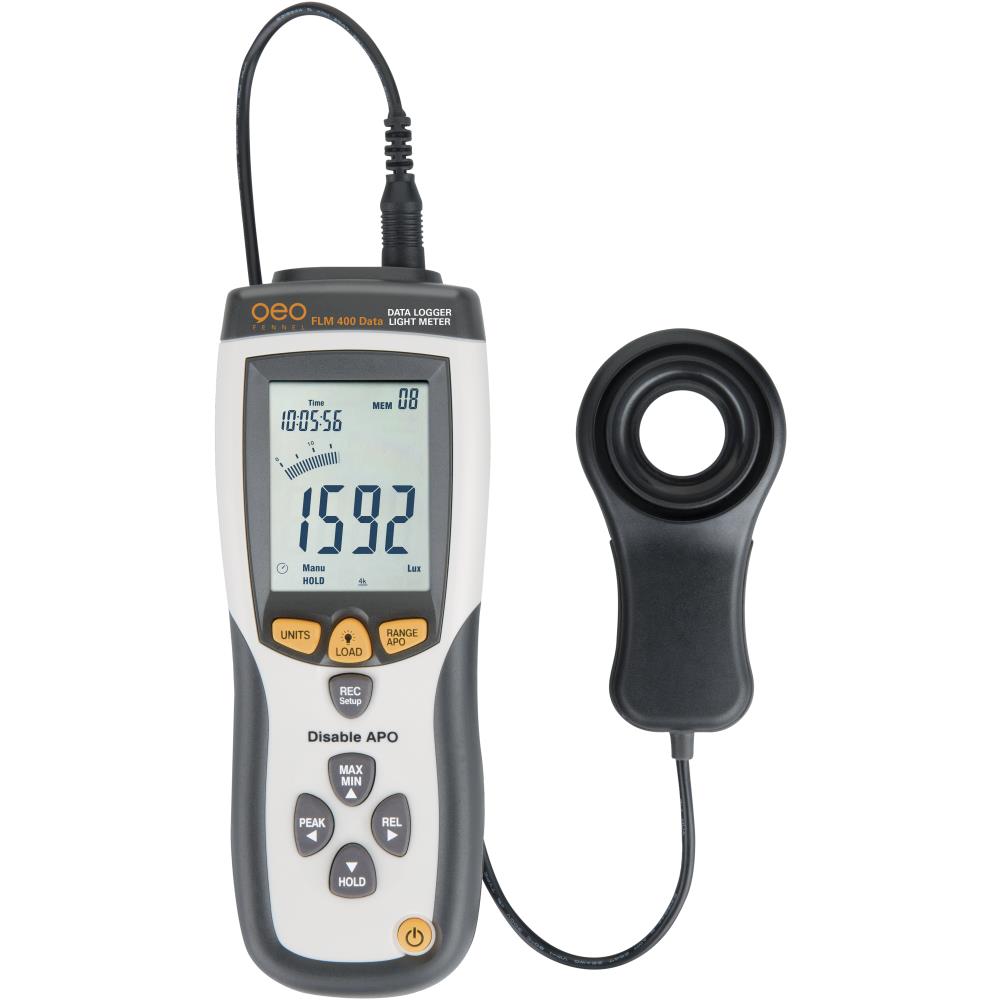 Luxmeter til professionel indendørs måling og overvågning af lys insolation. Måleområde fra 0 til 400.000 Lux. Måleinterval 1,5 gange i sekundet. Stort LCD-display. 99 værdier i hummelsen som kan aflæses direkte på apparatet, 16.000 målinger som datalogger. Maks./min.-funktion, data-HOLD-funktion. Autosluk. Stor nøjagtighed og kort responstid. Med USB-interface for tilkobling til PC. Leveres inkl. 9 V batteri, fotodetektor, USB-kabel, software og kuffert.