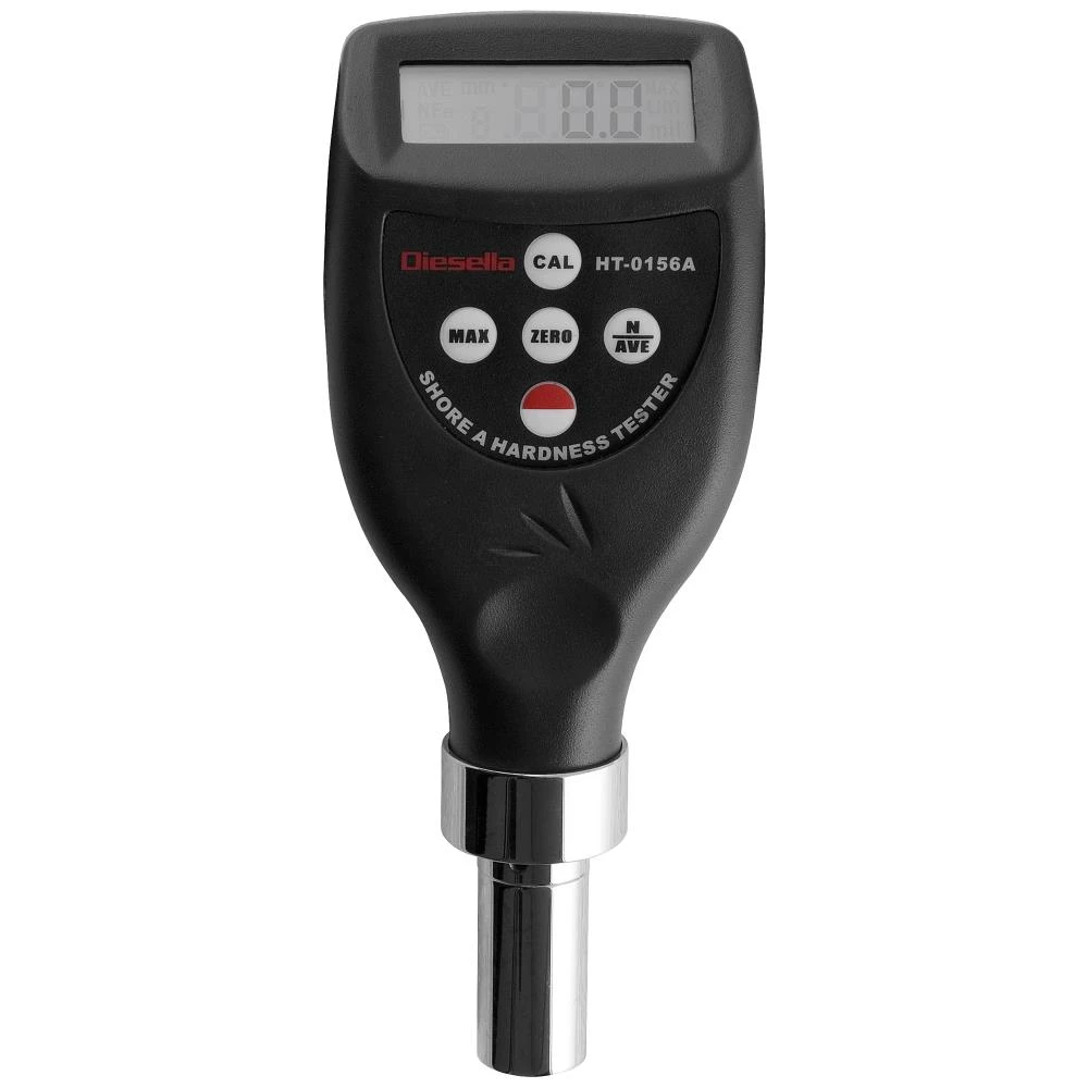 Digital hårdhedstester Shore A til blødt plast, formica, epoxy samt plexiglass. Med integreret probe i ergonomisk og attraktivt design. Kalibrering kan foretages med den medfølgende testklods. Instrumentet har gennemsnitlig værdi for 2-9 målinger. Automatisk slukning efter 1 minut. Inkl. RS-232 udgang, automatisk sluk og lav-batteri indikator. Standarder: DIN53505, ASTMD2240, ISO7619 og JISK7215. 4× AAA-batterier medfølger.