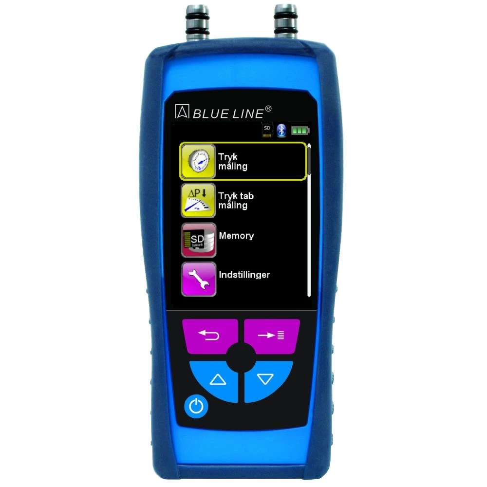 S4600ST-serien sætter nye standarder for præcisions målinger, med høj opløsning. Instrumenterne i S4600ST-serien har alle indbygget barometer og kan med stor fordel anvendes til måling på bl.a. ventilationsanlæg. Med denne serie er der mulighed for at foretage “almindelige” trykmålinger, såvel som differenstryksmålinger. Der kan foretages lækagetest med valgfrie alarmgrænser og testtid. Ved tilkøb af App’s kan instrumenterne i denne serie anvendes til bestemmelse af lufthastighed og flow, ved måling med pitotrør(tilbehør, kun S4601ST/S4602ST), ligesom at instrumentserien kan anvendes som datalogger, med plads til op til 1.000.000 målinger med micro SD-kort. Resultaterne stemples med tid og dato og kan enten overføres til PC, eller via IR-udgang udskrives af trådløs printer(Europrinter, tilbehør). S4610ST har som noget helt nyt indbygget Bluetooth Low Energy smart interface, således at instrumentet kan kommunikere og fjernstyres trådløst med en smartphone eller tablet, f.eks. iPhone 4S, Samsung Galaxy S4 eller Ipad Mini, hvortil der kan downloades Systronik software i Appstore eller Playstore. Manometrenes store 4 linjers TFT-farvedisplay bevirker at måleværdierne let kan aflæses under alle tænkelige forhold, hvilket giver dig sikkerhed for korrekt aflæsning og minimerer tidsforbruget ved hver måling. I displayet vises aktuelt tryk, min/maks. værdier for målingen og evt. trykfald. I opsætningsmenuen kan vælges mellem 9 enheder, vælg bl.a. mellem Pa, mbar/hPa, PSI, mmHg, inWC mv. Dette gør det let at sammenligne måleresultater, uanset hvilken måleenhed der anvendes. Målecellen nulstilles let, så du til hver en tid opnår de mest korrekte målinger. På manometerets bagside er der i gummikappen monteret en magnet, som fastholder manometret på alle magnetiske overflader, hvilket medfører at operatøren har begge hænder fri, under målingen. Det indbyggede opladelige Lithium-Ion batteri oplades fra den medfølgende strømforsyning med mini-USB. Lithium-Ion batteriet giver mulighed for, på en enkelt opladning, at gennemføre kontinuerlige målinger i op til 50 timer, i ECO-mode. Systronik S4600 manometrene leveres med beskyttende gummikappe, mini-USB lader, testcertifikat(kalibrering), samt dansk vejledning.