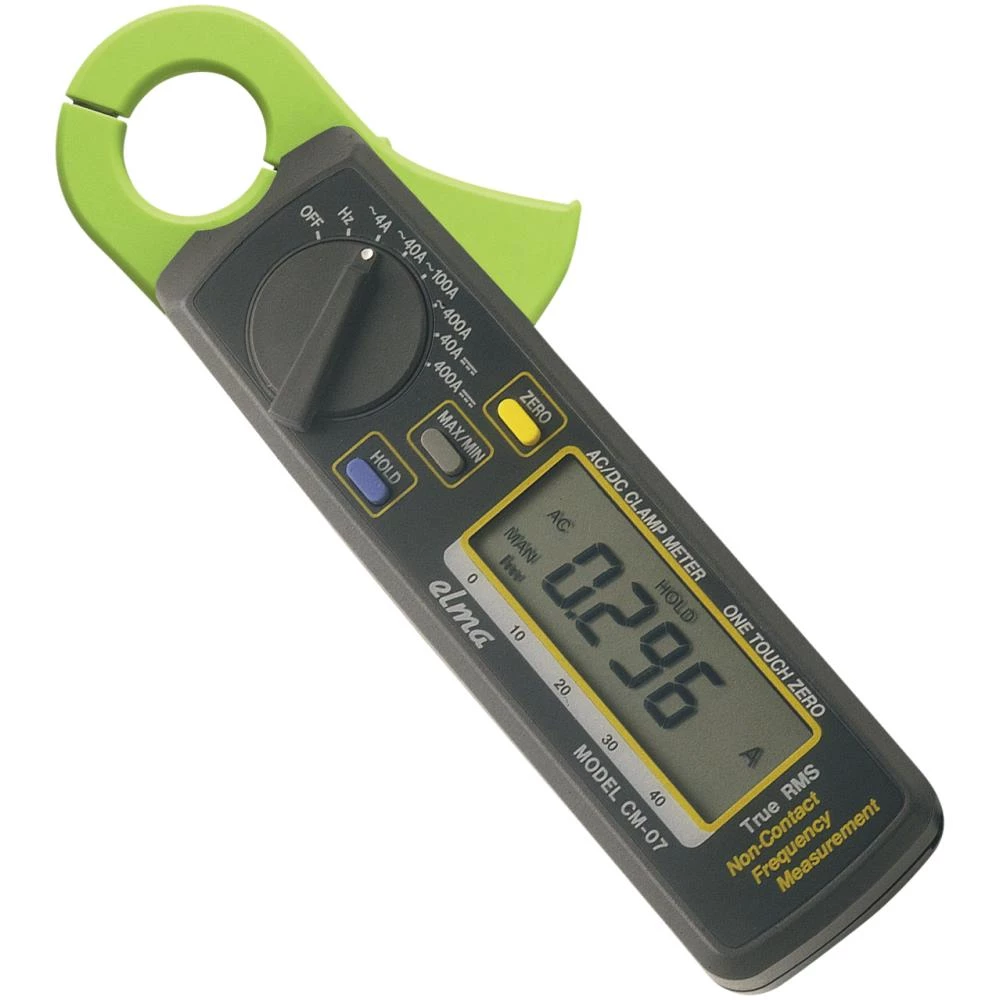 ELMA CM07 er et sand RMS tangamperemeter i et meget handy design for nem måling af både AC og DC strømme. Instrumentet har ekstra god opløsning, 3 3/4 ciffer display samt analog bargraph. ELMA CM07 er forsynet med automatisk nuljustering, relativ nul, min/max-hukommelse, datahold og måler strøm AC/DC samt frekvens direkte med tangen. Instrumentet opfylder IEC 61010-1 KAT II 600V og KAT III 300V og leveres komplet i taske inkl. batteri og dansk betjeningsvejledning.