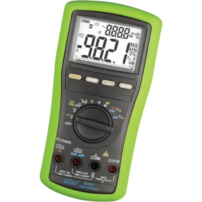 Elma BM 821s er et nyt nøjagtigt og robust kategori IV 1000V multimeter, som på grund af den meget store sikkerhed er velegnet til måling i hele installationen. Elma BM 821s er forsynet med stort tydeligt 4 ciffers dobbelt display og hurtig analog bargraph. Instrumentet måler spænding, strøm, frekvens, modstand, kapacitet, dioder og gennemgang. Elma BM 821s har en række ekstra funktioner bl.a. datahold, autosluk, automatisk/manuelt områdevalg og RS 232 port for PC-kommunikation. Med PC-kommunikationen og Windows software (bestilles separat), er det muligt at foretage ON-Line datalogning, hvor de målte data kan vises som: Digitalt display, analogt display, kurve/graf og tabel. Instrumentet er UL listet, opfylder IEC 61010-1 KAT IV 1000V og forsynet med højeffektive sikringer med kontrolfunktion. Elma BM 821s leveres komplet inkl. dansk betjeningsvejledning, batteri, testledninger og robust gummibeskyttelseskappe.