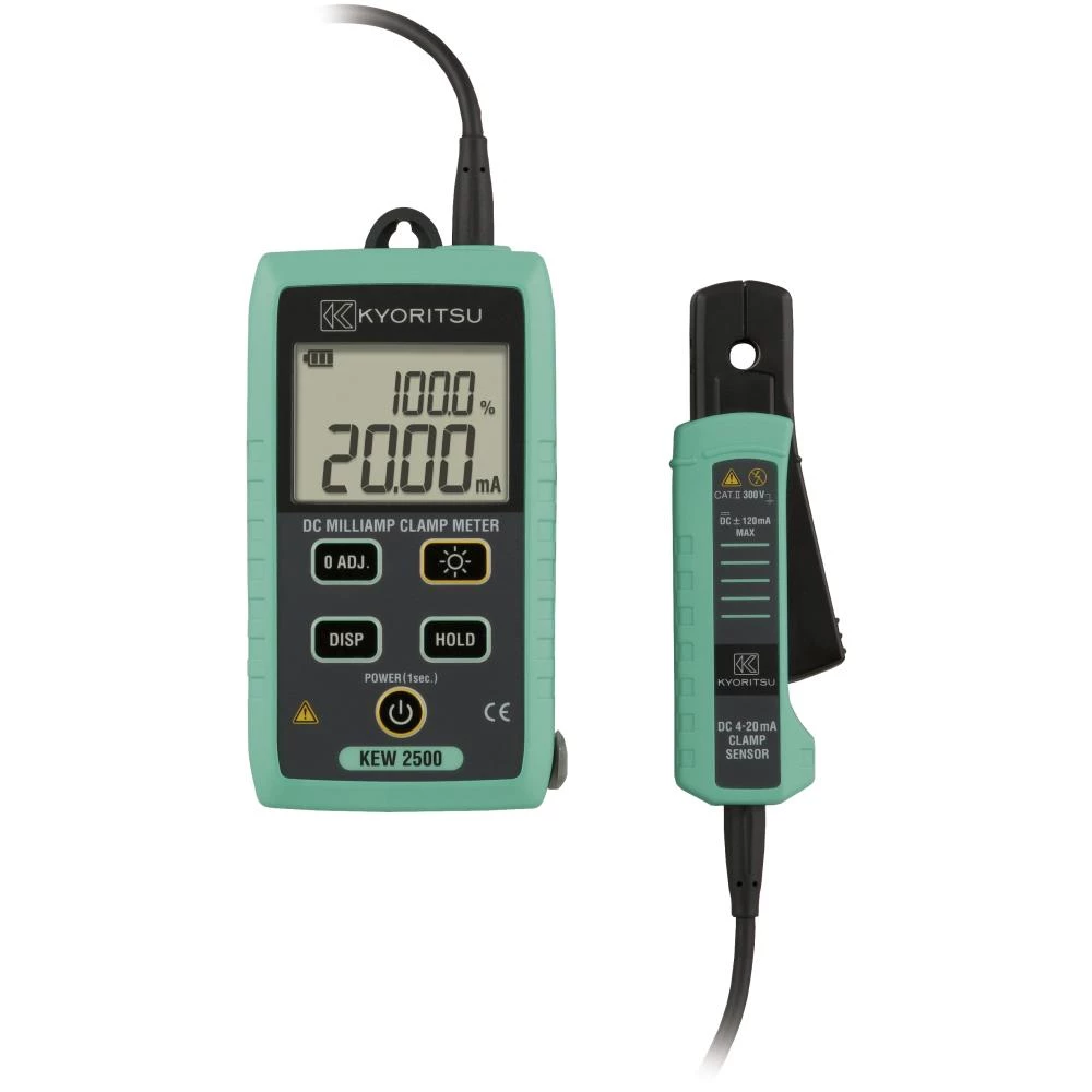 Kyoritsu KEW2500 er et nyt unikt instrument for måling af små DC strømme i f.eks. procesanlæg, hvor det er vigtigt at kunne måle strøm under drift uden at bryde kredsløbet. Instrumentet er forsynet med en smart lille strømtang og er derfor også velegnet ved måling på svært tilgængelige steder. KEW2500 er forsynet med et belyst letlæseligt dobbelt display, hvor strømmen kan aflæses direkte i mA samtidig med procent visning af 4-20mA området. Instrumentet måler strøm i området fra 0,01mA til 120,0mA og er desuden forsynet med indbygget LED lommelygte, analog udgang, automatisk nuljustering og datahold. Instrumentet opfylder IEC 61010-1 KAT II 300V og leveres komplet i taske inkl. batterier og betjeningsvejledning.
