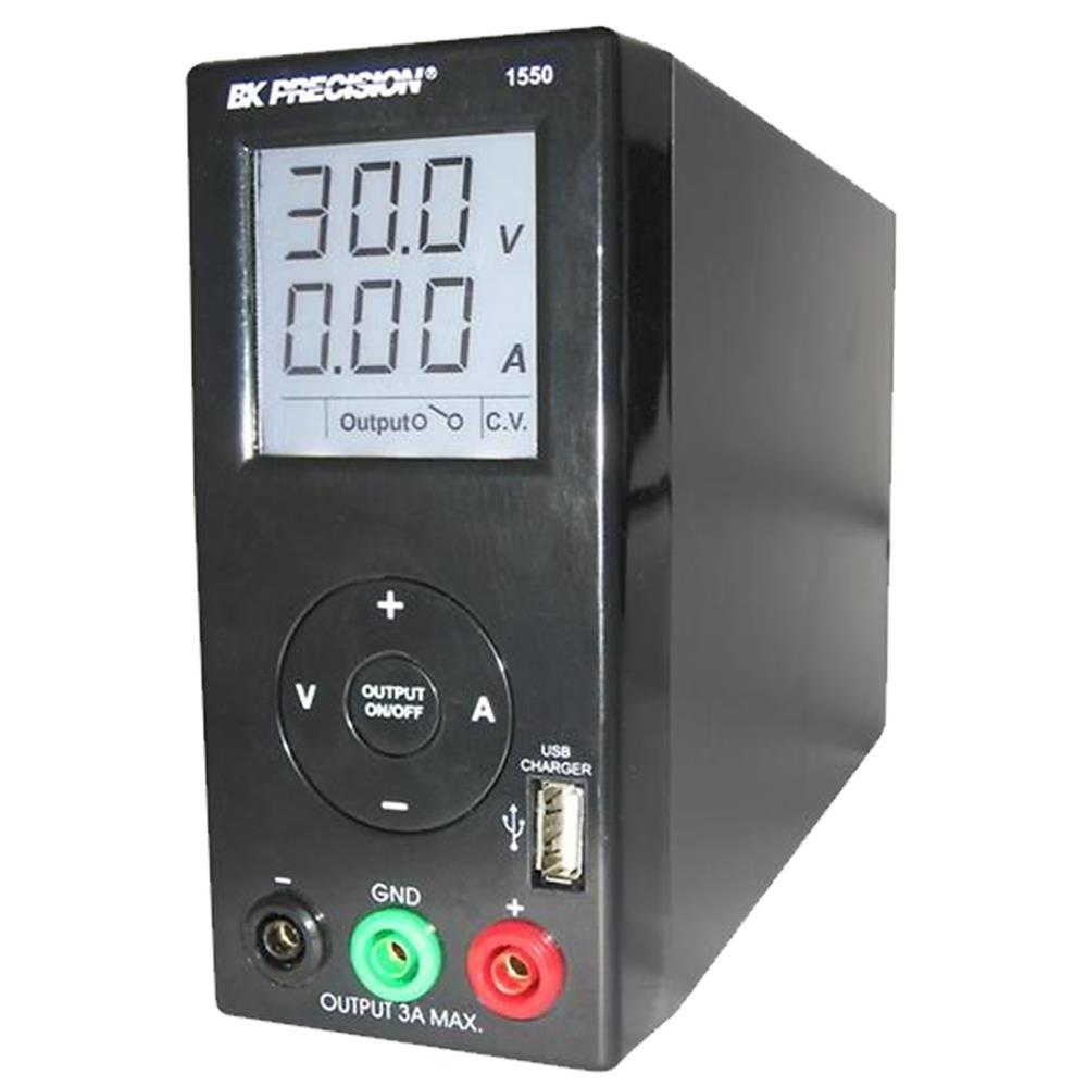 Ny smart og kompakt switching strømforsyning fra BK PRECISION med en fantastisk ydelse i forhold til prisen. Strømforsyningen har trinløs variabel udgang på 1…36V og 0…3A, og et stort tydeligt display der viser spænding og strømforbrug samtidig. Output ON/OFF samt regulering af strøm og spænding sker vha. en smart touch kontrol. BK1550 er forsynet med sikkerheds bananbøsninger og en USB lade udgang, hvor du nemt lader mobiltelefon, PDA og lignende – en smart ny feature på strømforsyningen der er velegnet til brug i laboratorier, værksteder og på skoler. BK 1550 leveres komplet med brugermanual.