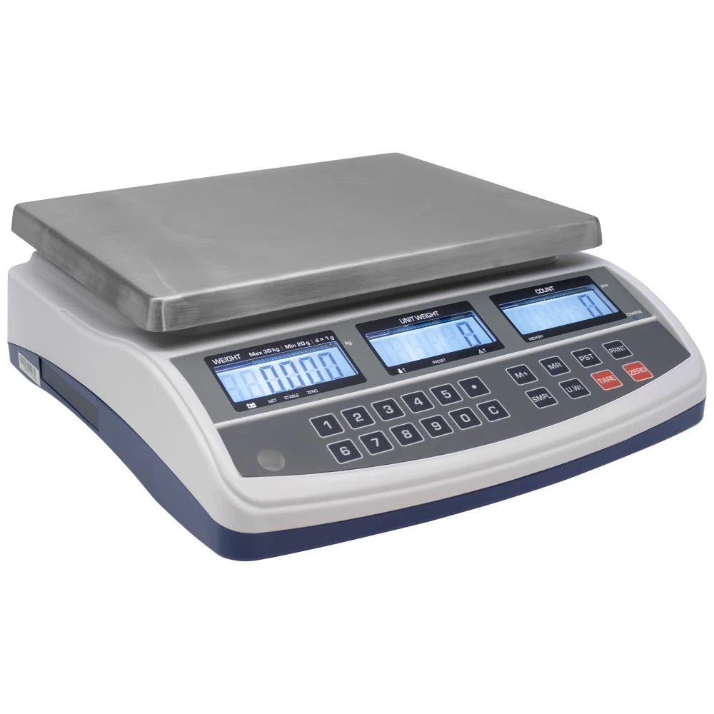 Avanceret tællevægt til produktions- og lagerstyring, hvor præcise optællinger af eksempelvis komponenter er afgørende. Vægten er udstyret med tre separate LCD-displays (vægt, referencevægt og total), hvilket giver brugeren et hurtigt og overskueligt overblik. Funktioner som automatisk referencevægt-optimering, forhåndstara (PRE-TARE) og audible fill-to-target alarm øger effektiviteten i optællingsarbejdet. Den robuste vejepladen på 230×300 mm gør vægten velegnet til både små og større emner. Vægten leveres med både AC-adapter samt indbygget genopladeligt blysyrebatteri (6 V/4 Ah), som giver op til 70 timers driftstid og muligheden for mobile optællinger. Tællevægten er således særligt velegnet til produktion, lager, logistik og kvalitetskontrol.