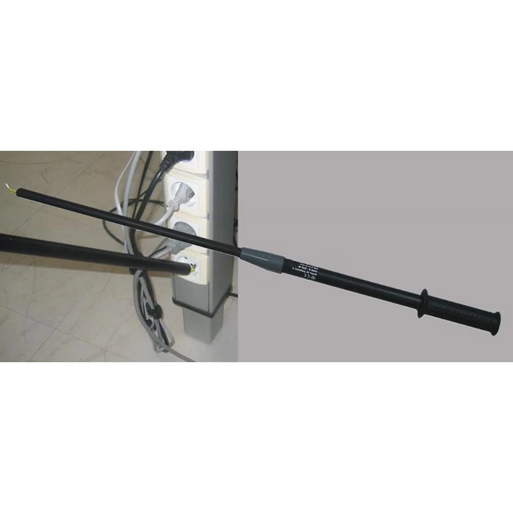 Når man skal måle gennemgang i beskyttelseslederen på f.eks. loftarmaturer, er det ofte nødvendigt at bruge en stige for at nå. Stigen skal flyttes og man kravler op og ned flere gange. Med de nye teleskop prøvepinde, kan man nu stå på gulvet og lave disse målinger – det sparer meget tid. Er også velegnet ved lavtsiddende genstande, så man ikke behøver at ligge på knæ. Proberne passer til 4mm stik og kan udtrækkes efter behov, 49-85 cm. Max strøm 2A. Opfylder IEC 61010- Kat IV 600V.