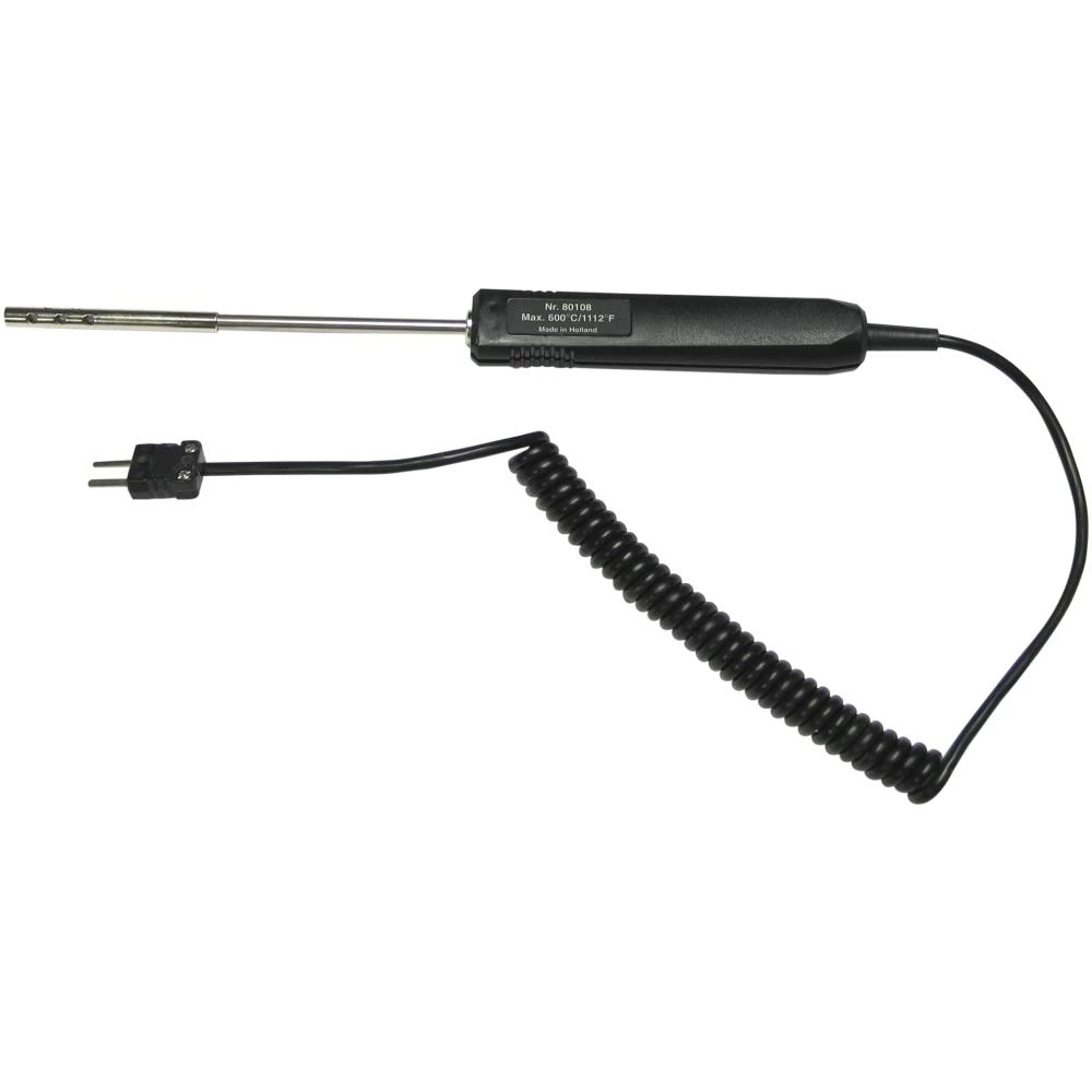 Standardføler – Type K Ni-CrNi. Lufttemperaturføleren leveres med spiralledning og isoleret håndtag.