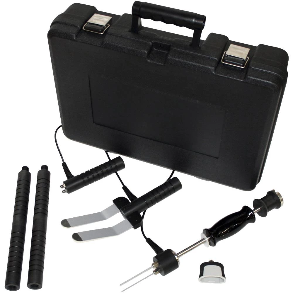 Tilbehørskit i kraftig og robust kvalitet til Elma DT-125. Indeholder: Hammerelektrode med 2 forskellige nåle længder til måling i træ. Dybdesonde f.eks. til indstik imellem brædder. Overflade probe med håndtag der flytter målepunktet væk fra instrumentet for at lette betjeningen. 2 stk. håndtagsforlængere. Leveres samlet i praktisk transport kuffert.