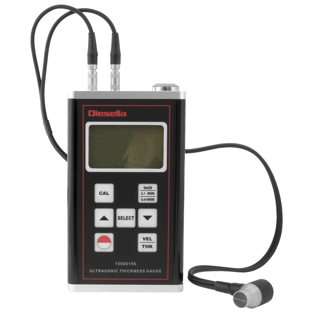 Ultrasonisk tykkelsesmåler til kontrol af slid og korrosion på metaldele. Måling af metalliske materialer (stål, aluminium, messing, kobber, zinck m.m.) samt glas. Kan måle vægtykkelser, eksempelvis til kontrol og overvågning af rør, beholdere mv. samt undersøgelse af plade- og stålkonstruktioner og lign. Måleområde 1-400 mm, nøjagtighed ±0,5 %. Bruger 4 × AAA batterier.