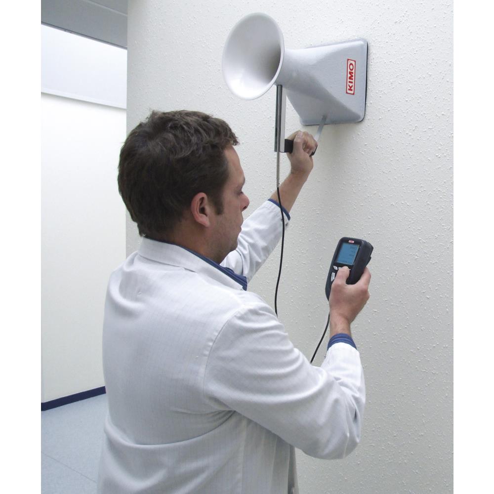 KIMO VT200TF er et nyt smart professionelt varmetrådsanemometer for måling af både temperatur, lufthastighed, luftmængde i kanaler eller med tragt. Instrumentet er forsynet med stort grafisk baggrundsbelyst multidisplay med visning af flere parametre på samme tid. Til instrumentet kan der tilsluttes en række forskellige smart-probes (bestilles separat), såsom vingehjul og trådløse Pt 100 temperaturføler. Der kan også isættes smart-modules med bl.a. 4 type-K temperaturindgange. Det medfølgende smart-module gør KIMO VT200TF i stand til at måle og datalogge 0-10 V og (0)4-20 mA signaler. KIMO VT 200TFs unikke fleksible varmetrådsprobe, gør det ligeledes meget velegnet til måling af lækageluft i forbindelse med tæthedskontrol af bygninger. Med KIMO VT 200TF, kan man foretage alle relevante målinger for indregulering af alle størrelser ventilationsanlæg, der kan indlægges 10 størrelser af både rund og firkantet kanal, efter eget valg. Ligeledes har det indbygget manuel/automatisk datalogger med hukommelse til 8000 målinger, som efterfølgende kan overføres til PC via USB – for videre bearbejdelse.(Software bestilles separat). Instrumentet har bl.a. datahold, tilvalg af K2-faktor, min/maks., gennemsnit, automatisk gennemsnit, autosluk samt sprogvalg bl.a. dansk. Instrumentet leveres komplet i alu. kuffert, inkl. teleskop varmetrådsprobe, kalibreringscertifikat, vejledning og batterier.
