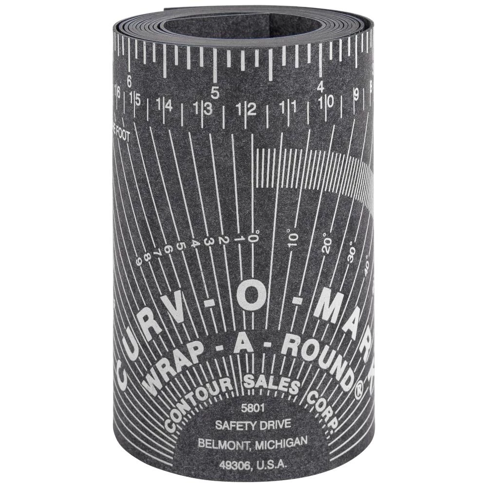 Curv-o-mark wrap-a-round er et værktøj til mærkning af lige linjer rundt om rør eller til brug som en lige kant. Curv-o-mark er lavet af fleksibelt pakningsmateriale med god modstand mod varme og kulde (maks. temperatur 175°C). Materialet er asbestfri. Alle størrelser er trykt med inch og metrisk skala, pitch højde, tangentdiagram og andre nyttige markeringer. Fås i flere varianter.