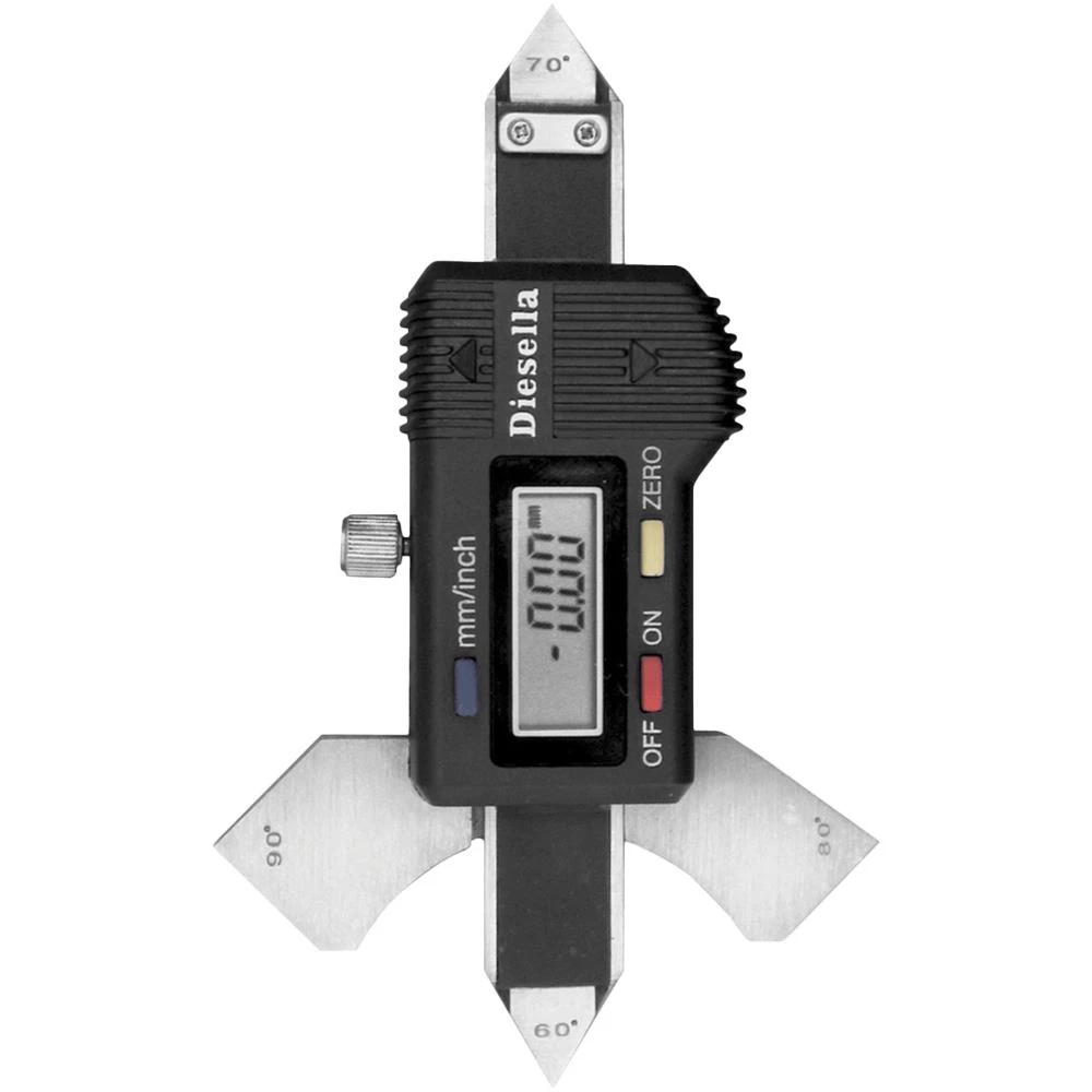 Digital-kantsømlære (model C) til måling af 60° – 70° – 80° – 90° svejsefuger. Matforkromet udførsel. 0-25 mm måleområde. 0,01 mm aflæsning.